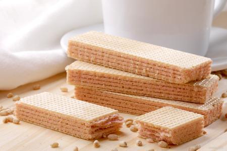 与其他饼干差别的是,, ,,,,,,威化饼干是以小米粉(糯米粉 ) 、淀粉为主要质料,, ,,,,,,比精白面粉营养稍高。。。。。。。但威化饼中的奶油脂肪含量十分高,, ,,,,,,平均每一块60卡路里,, ,,,,,,并且密度低,, ,,,,,,吃不饱,, ,,,,,,以是吃多了也禁止易察觉。。。。。。。着实,, ,,,,,,三块巧克力威化饼的热量就已经凌驾 200 卡路里了。。。。。。。
